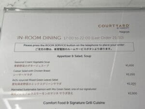 コートヤードマリオット名古屋で朝食だけの場合の料金を一覧表にまとめました。