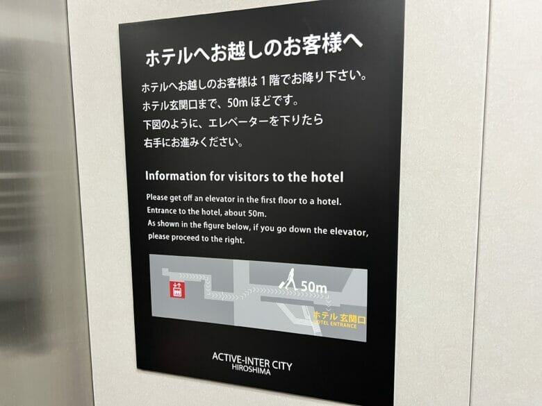 シェラトン広島のエレベーターには「ホテルエントランス」と印刷された箇所が2つ。