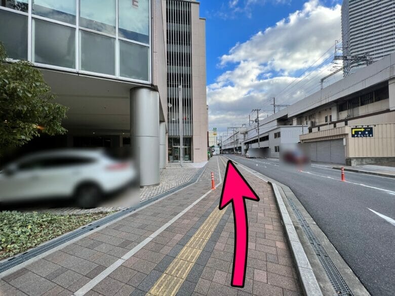 とりあえず、「シェラトングランデ広島ホテル」書いてある銀色の看板からピンクの方面に進みましょう。
