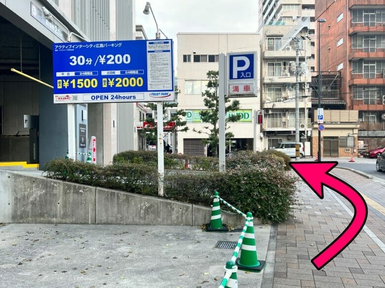 ということで、次に、現地の写真をご覧いただきながらシェラトン広島が提携している駐車場にあなたをナビしますね!