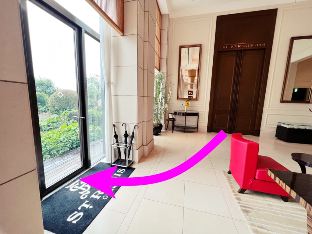 喫煙所は「ST.REGIS OSAKA」の文字が記載されてあるフロアマットの外ににあります。